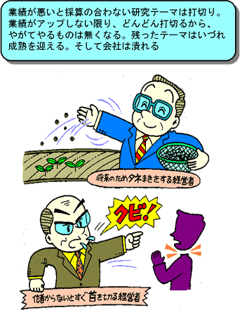 いつでもレイオフができる社会になったら従業員の企業に対する忠誠心がなくなる。従業員を信頼できなくなると、企業として従業員に必要な情報を十分に与えることができなくなる。みんなが必要な情報を共有してこそ良いアイデアが生まれるし、チームワークも生まれ、使命感や達成感を意識できる。これがなくなったら企業の研究開発にとって大きな痛手である。日本は、個人のスタンドプレー的な独創性よりも、皆で情報を共有して安心して仕事ができる国であり続けて欲しいと思う。しかし、この思いは届かないだろう。